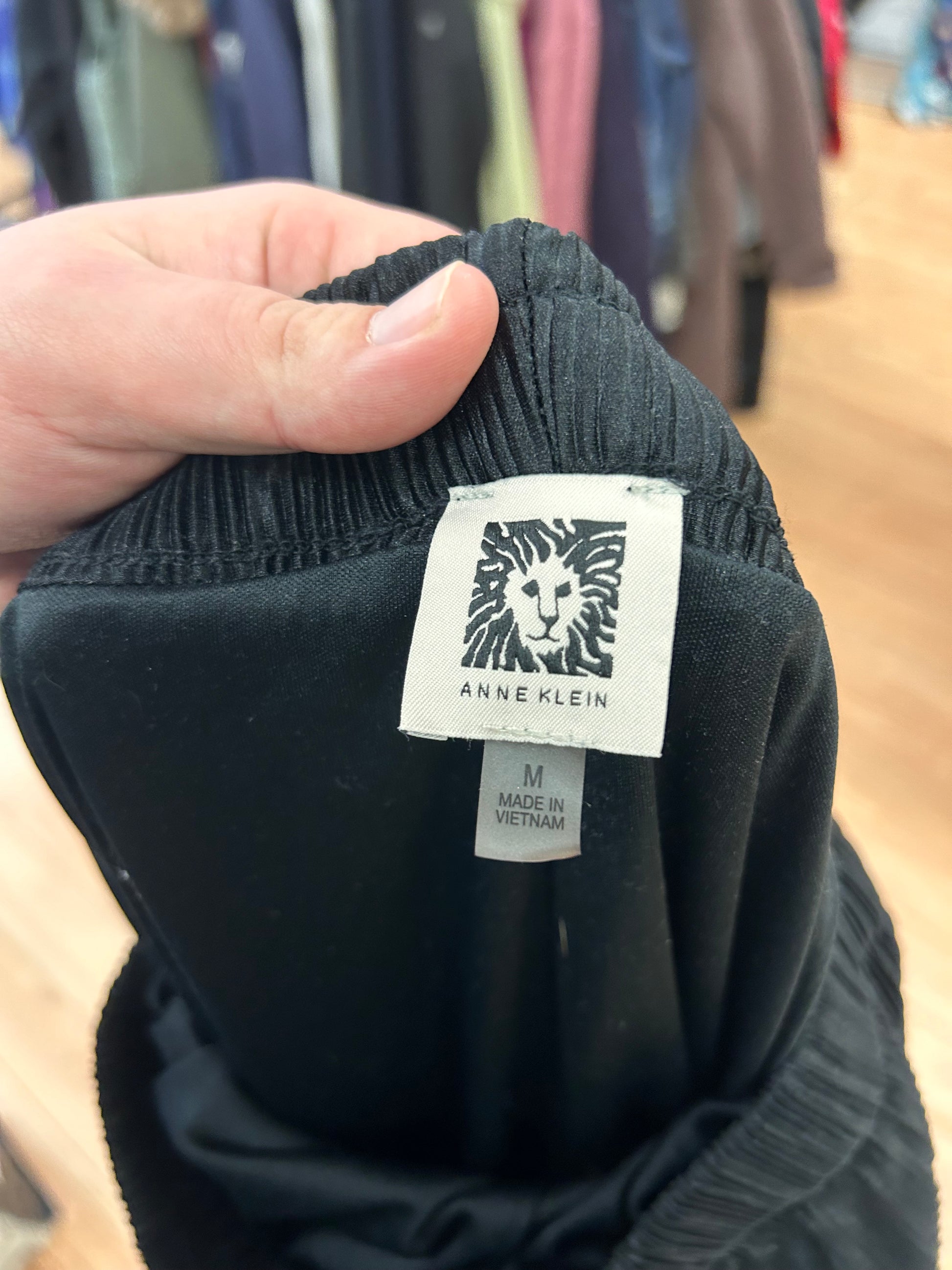 Anne Klein brand. Cropped wide leg pants. Silky material black ribbed. Size medium. Brand new condition