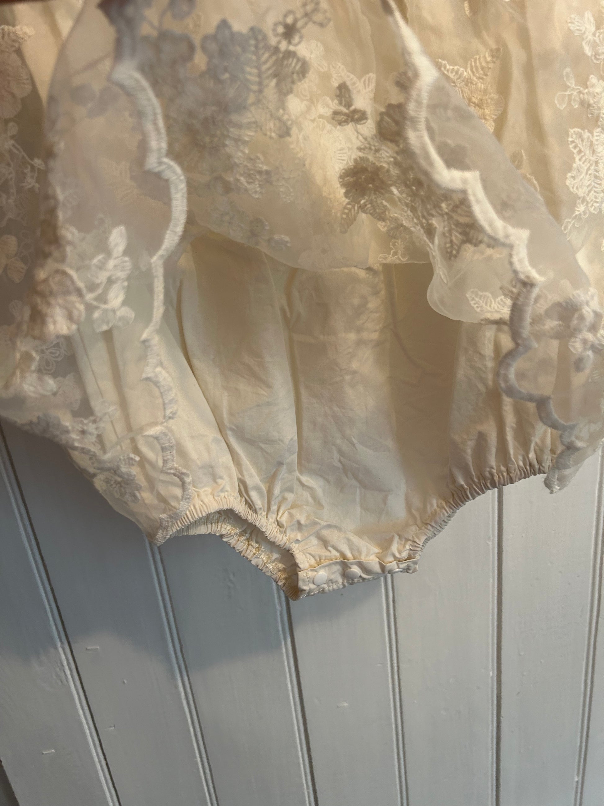 Annie & Charles brand. Short sleeve onesie with lace skirt overlay. White in colour. Size 18/24m. Brand new conditionÂ