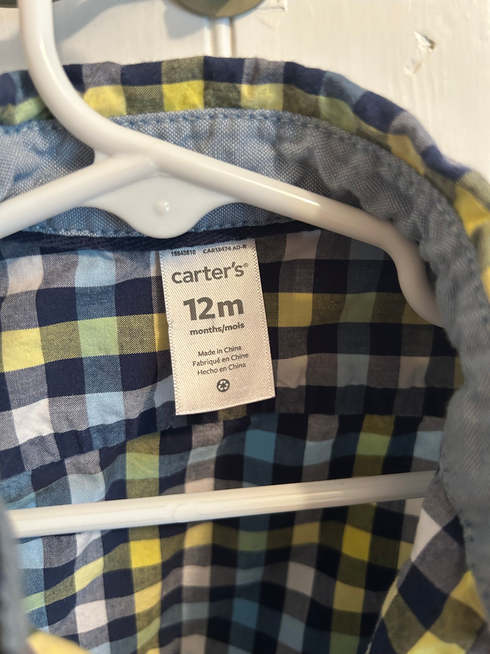 Carters 12m yellow & blue gingham flannel