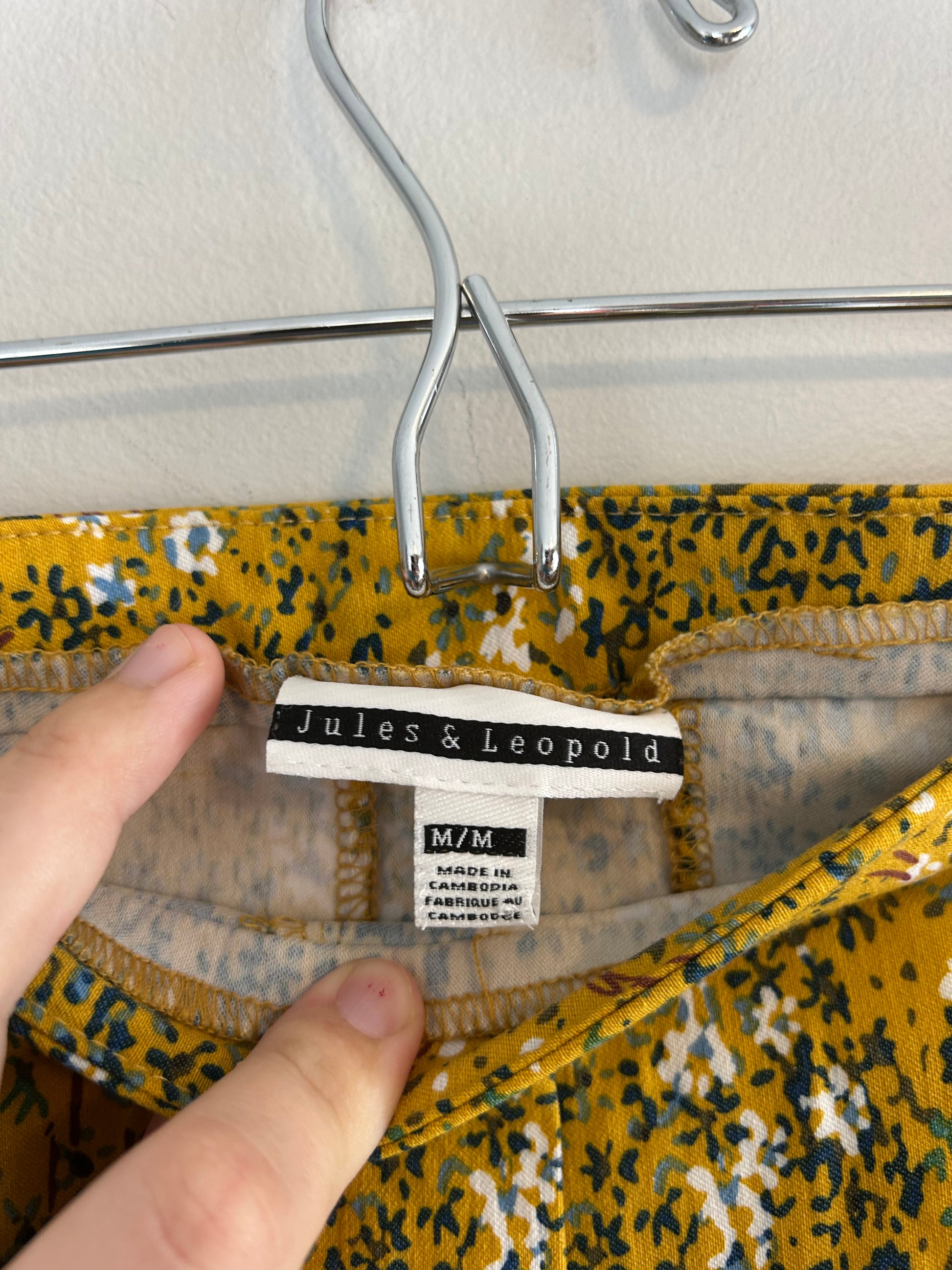 Jules & leopard brand. Dress pants capris. Yellow with blue & white floral print. Size medium. Brand new condition