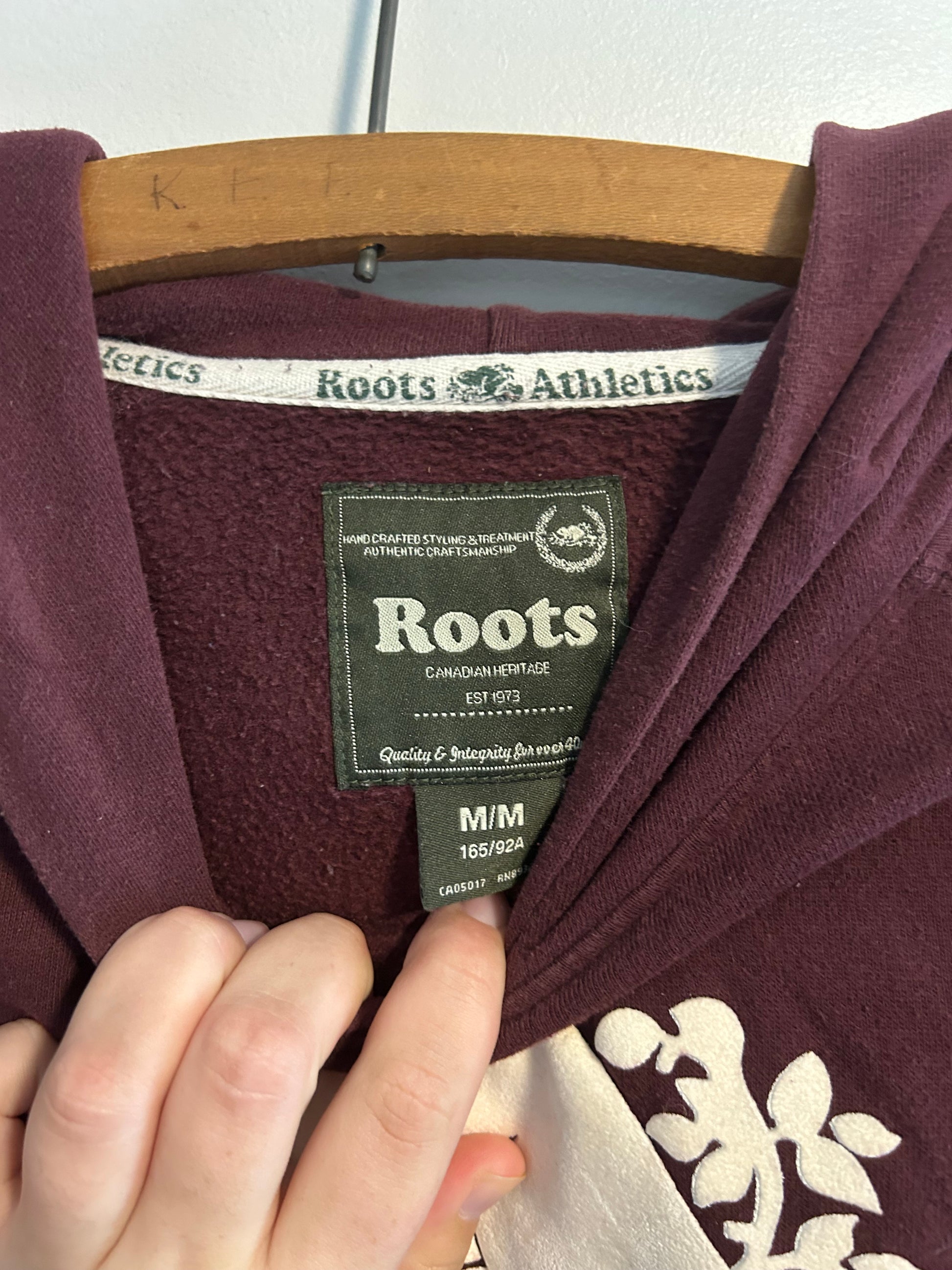 Roots brand. Pullover hoodie. Burgundy with white logo. Size women’s medium. Brand new condition
